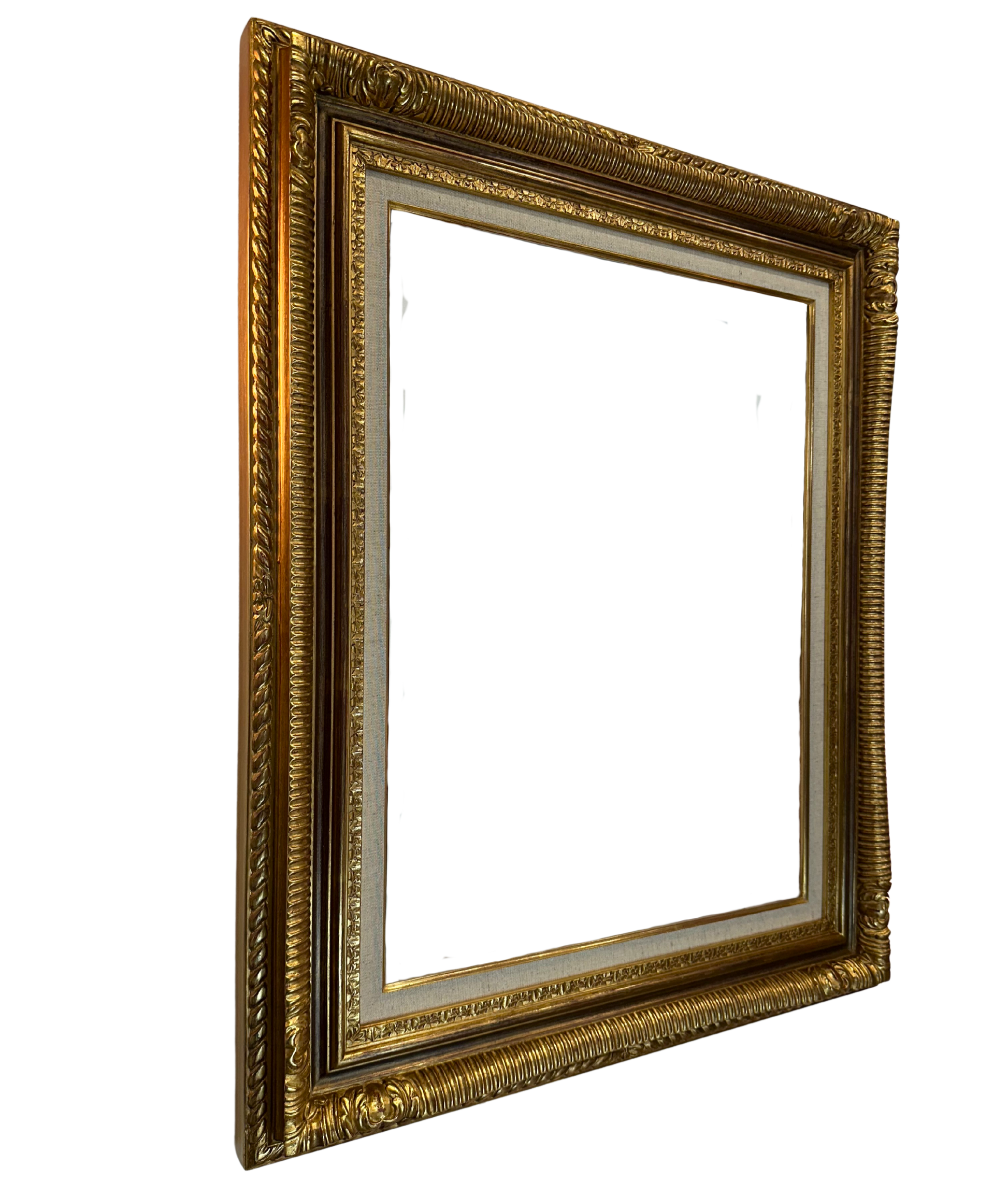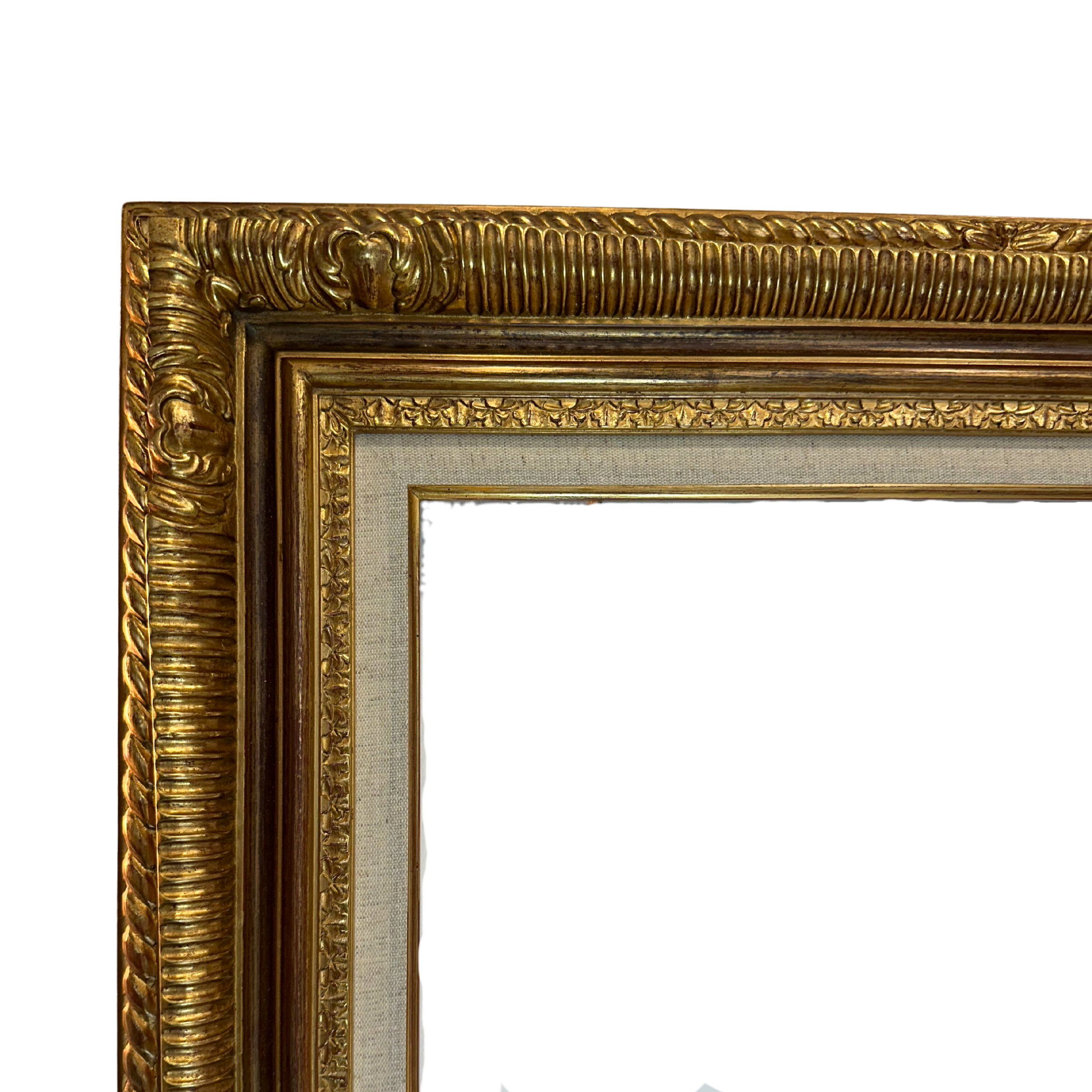 Cadre luxueux à baguette imposante de 9 cm de largeur, offrant une présence visuelle remarquable. Finition dorée raffinée rehaussée par des décors d'angle élaborés qui apportent une touche d'élégance classique. Fabrication soignée avec coins rebouchés garantissant une jonction parfaite et une structure solide. Solution d'encadrement premium pour valoriser vos œuvres importantes.