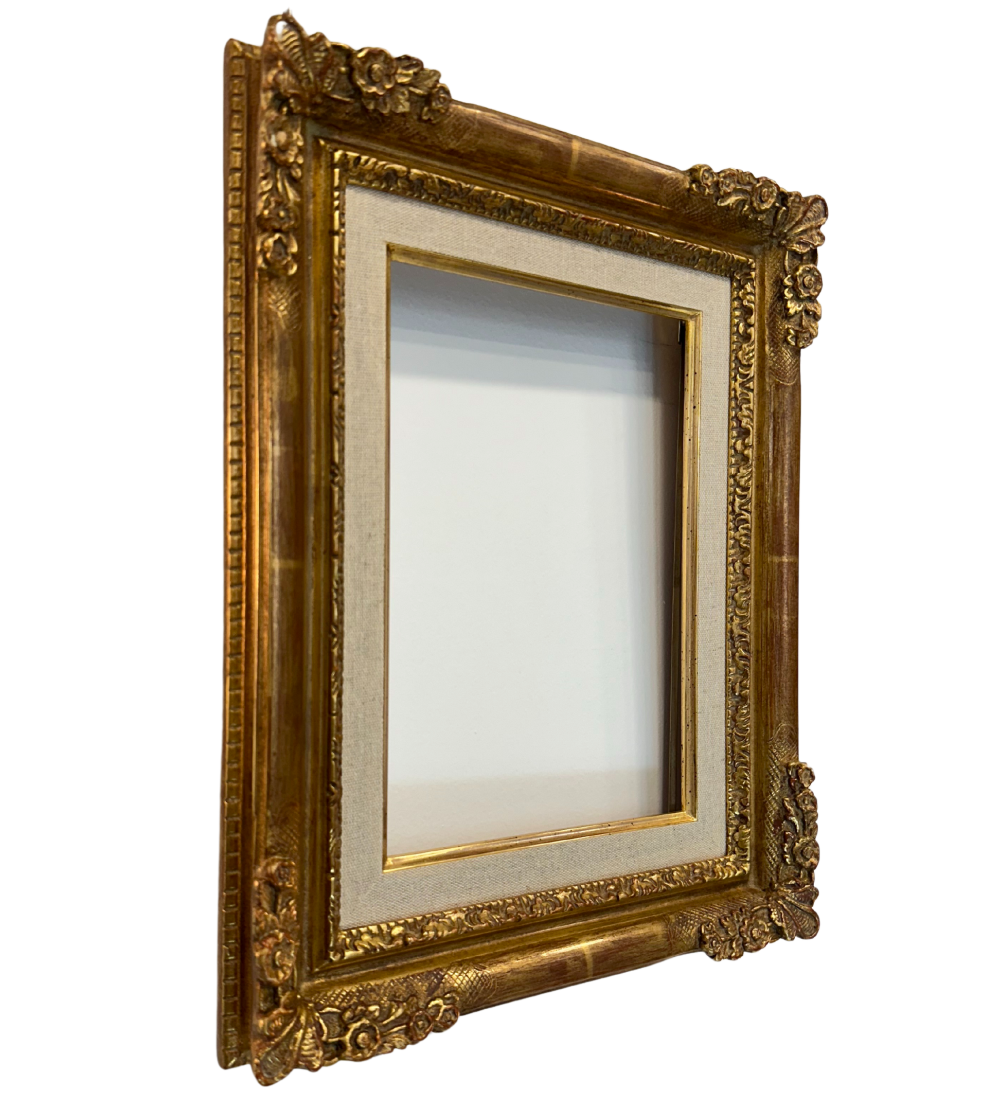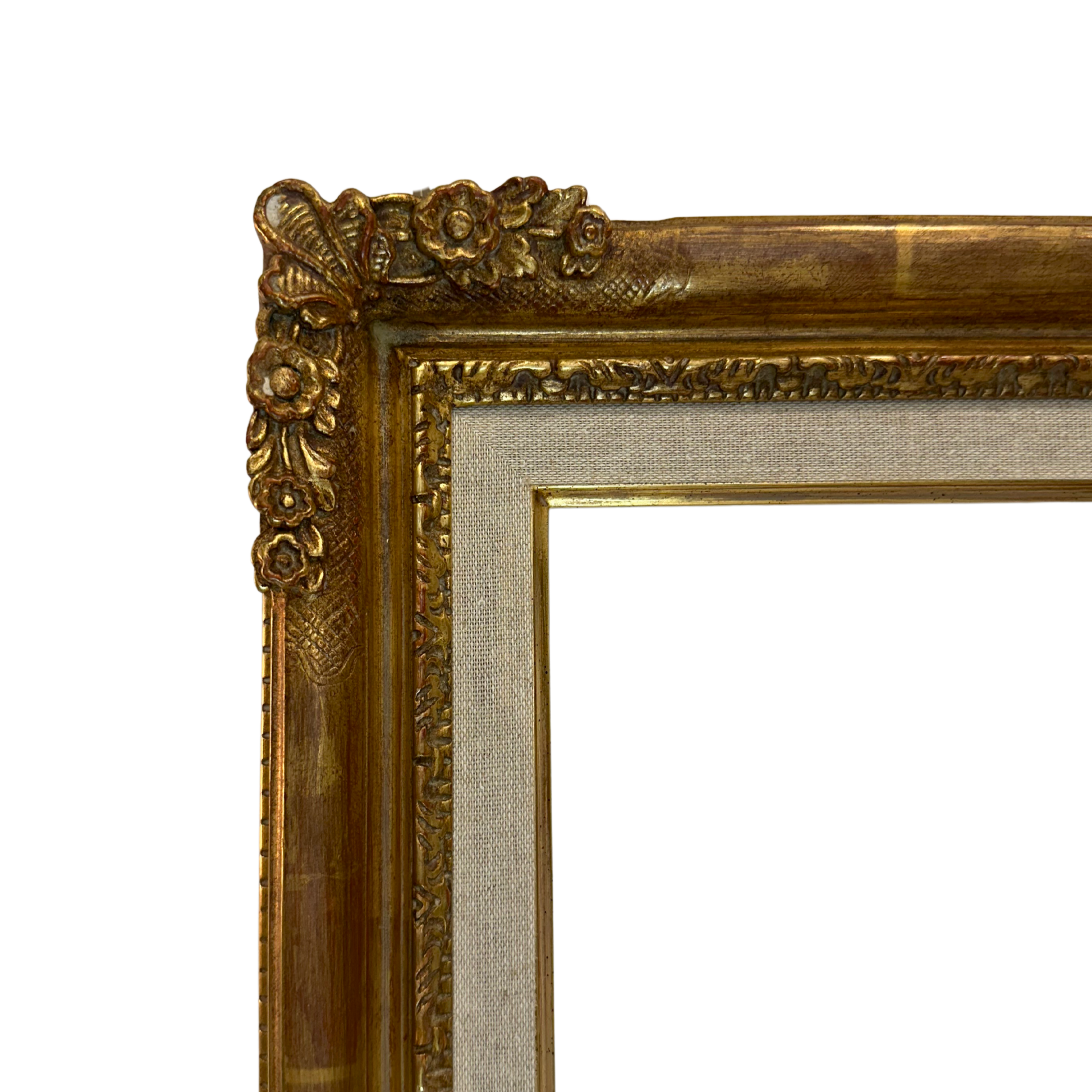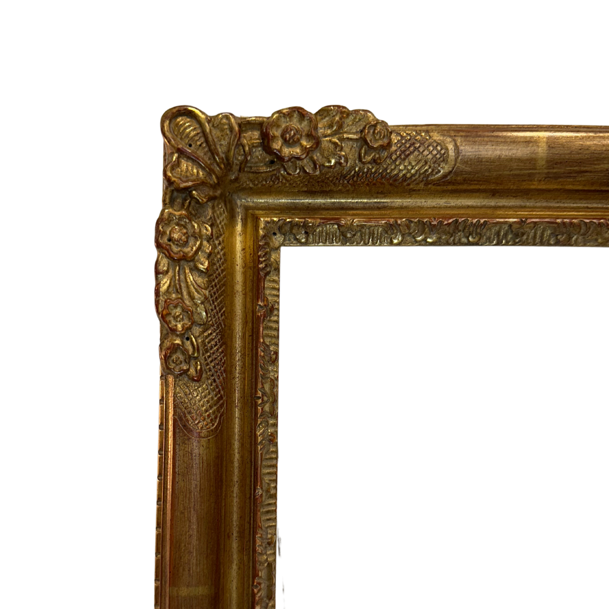 Cadre élégant de style Louis XIV avec une baguette dorée de 5 cm de largeur. Les coins ornés de motifs floraux apportent une touche d'authenticité et de raffinement caractéristique de cette période artistique. Parfait pour mettre en valeur vos œuvres tout en ajoutant une note classique et somptueuse à votre intérieur.