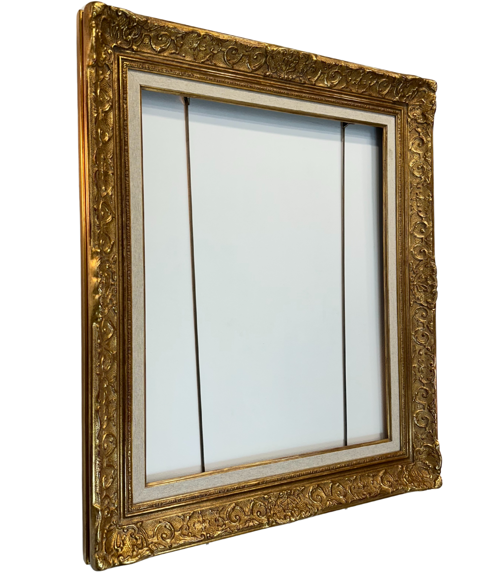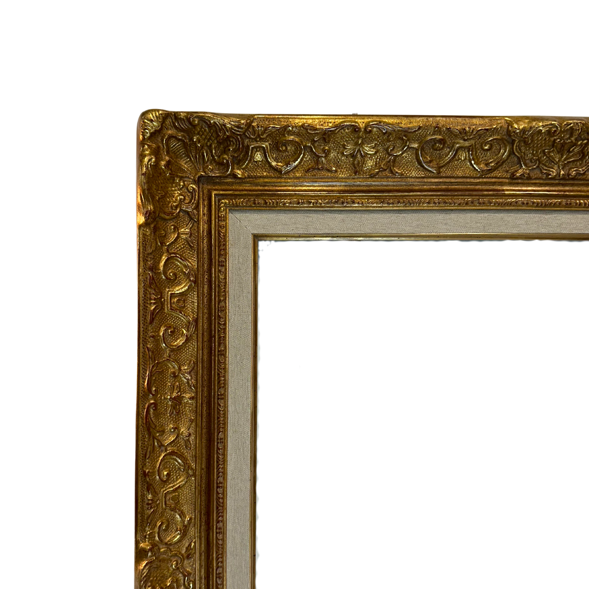 Cadre élégant de style Louis XIV avec une baguette dorée de 7,5 cm de largeur. Orné d'une frise décorative inspirée des motifs de Jean Bérain, ce modèle CL36 allie la magnificence du Grand Siècle à une finition soignée. Sa composition classique s'harmonise parfaitement avec les œuvres d'art traditionnelles tout en apportant une touche de noblesse à votre intérieur.