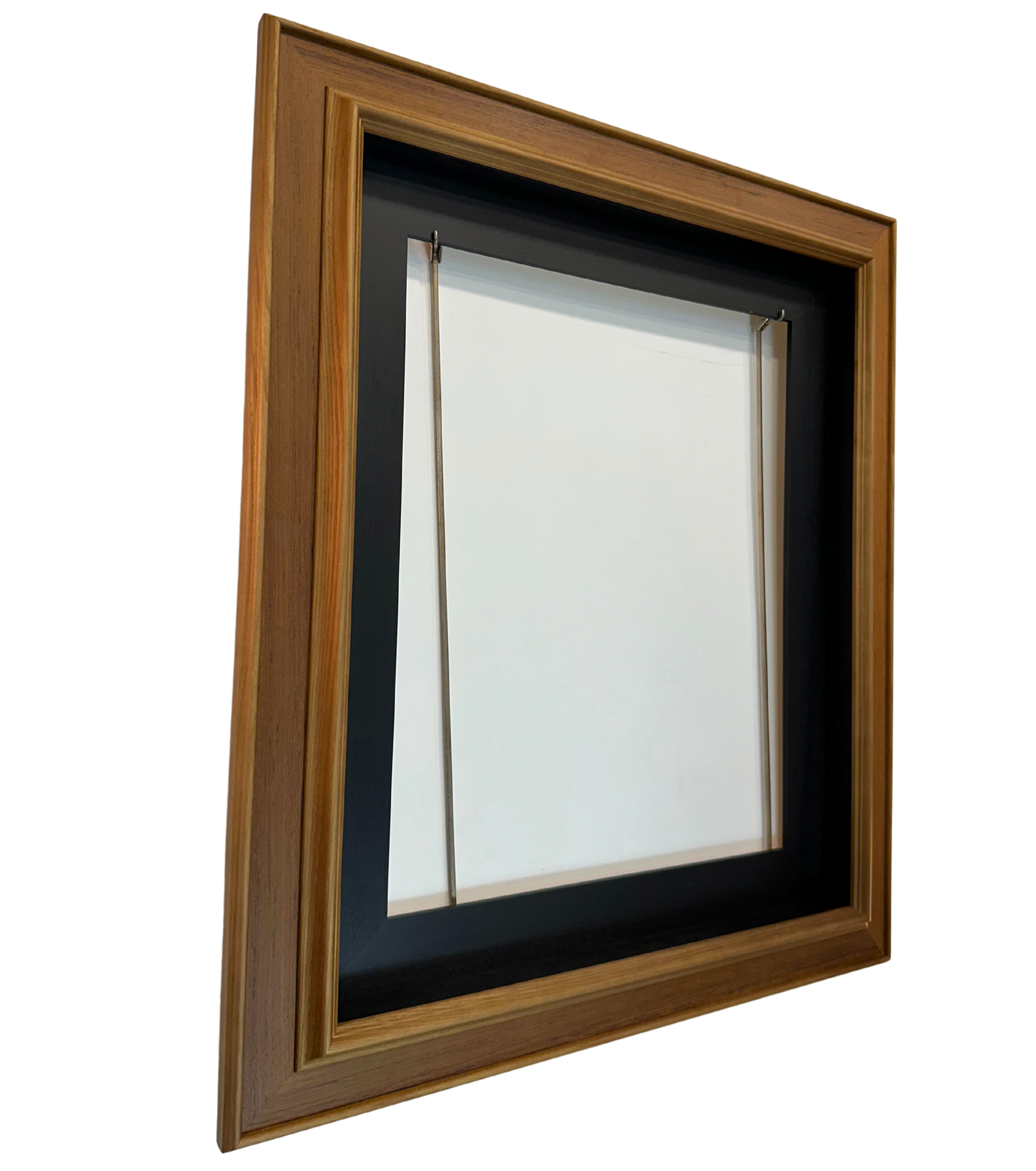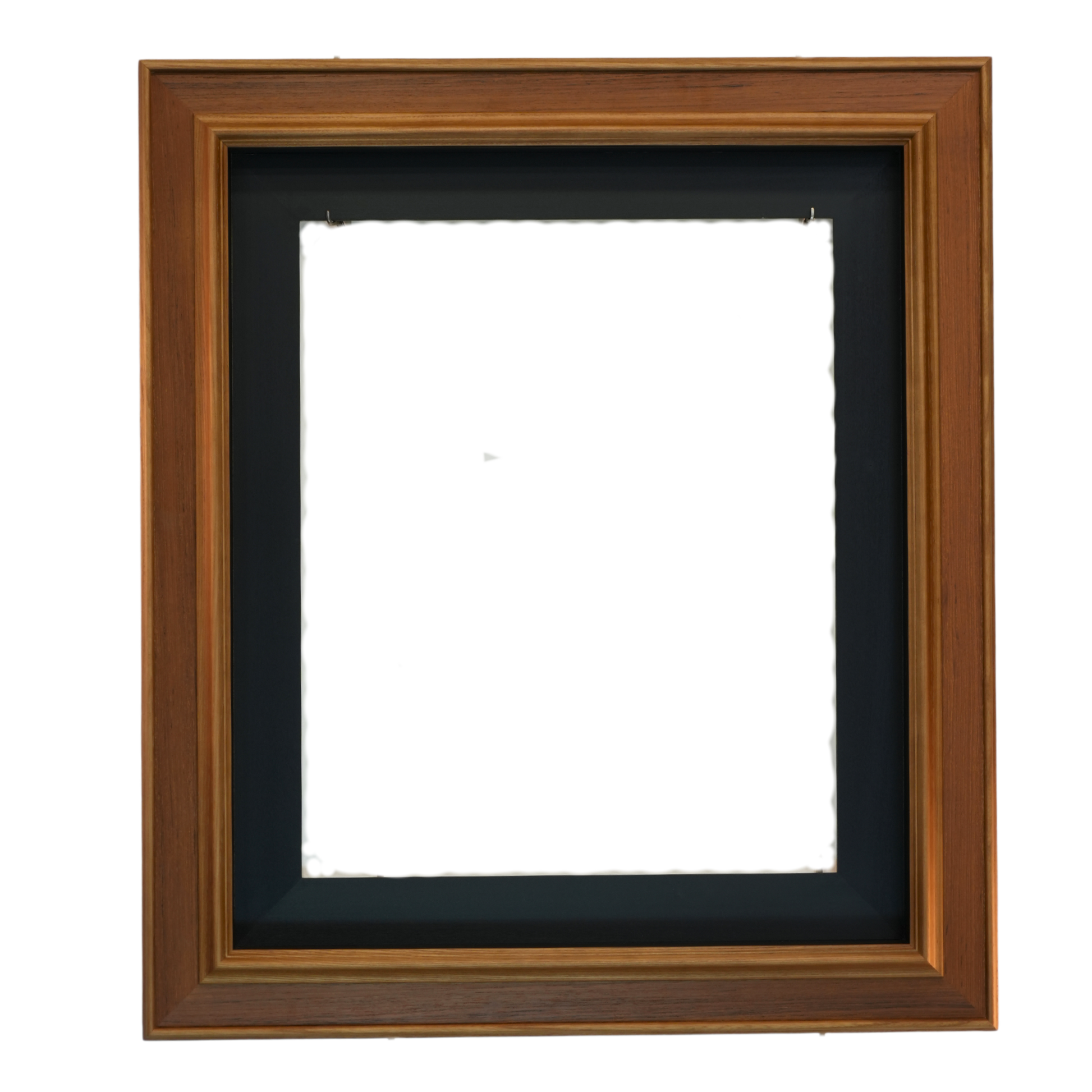 Cadre sophistiqué avec baguette de 7 cm intégrant une caisse américaine noire. Finition bi-tons alliant la chaleur naturelle du bois à une teinte plus foncée au centre, créant un contraste élégant. Construction professionnelle offrant à la fois robustesse et esthétique raffinée pour une mise en valeur optimale de vos œuvres.